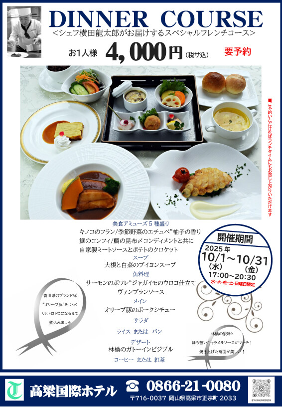 10/1(水)~10/31(金) 17:00~20:30 (水・木・金・土・日曜日限定) 4,000円(税サ込) ※要予約